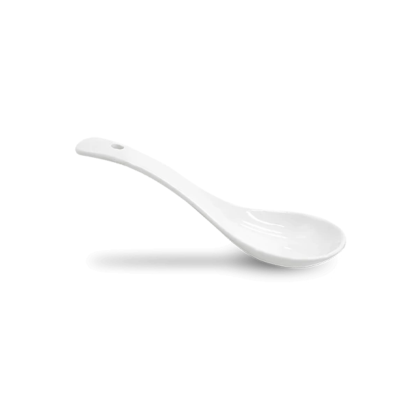 Cuchara de loza con mango curvo, ideal para sopas, caldos y platos orientales. Su diseño ergonómico facilita el agarre y añade un toque estético a la mesa. Apta para uso doméstico o profesional.
